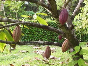 Sotavento Plantanal has 18,000 cacao plants distributed throughout the property. Planted in 1983, the cacao orchards yield the cacao fruits shown on the right. The fruit inside the husk contains the seeds that are processed in the area to yield pure chocolate. Since planting, the chocolate market experienced setbacks, and the cacao has not been groomed annually and has become overgrown. Sotavento is in the process of restoring a harvestable orchard, but for the time being it is an endless supply of monkey food and draws wildlife onto the property. Chocolate has been used for centuries by the area GuaymĂ Indians to make chocolate drinks. Commercial production of cacao remains a mainstay of the Costa Rican agricultural economy, alongside coffee, sugar, bananas, and flowers.