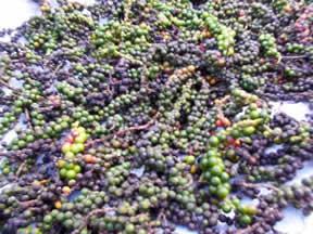Black pepper was planted on Sotavento Plantanal in 1984. At present there are hundres of plants distributed along the beachfront coastal plane. The pepper seed pods are dried in the sun and ground for use as a condiment. Both the lodges are supplied with a pepper mill and a bag of fresh whole pepper. Packages of pepper are available for purchase to all guests as gifts or for domestic use. To the left is a modest harvest of pepper pods drying in the sun. Below is a picture of the pepper plant itself.